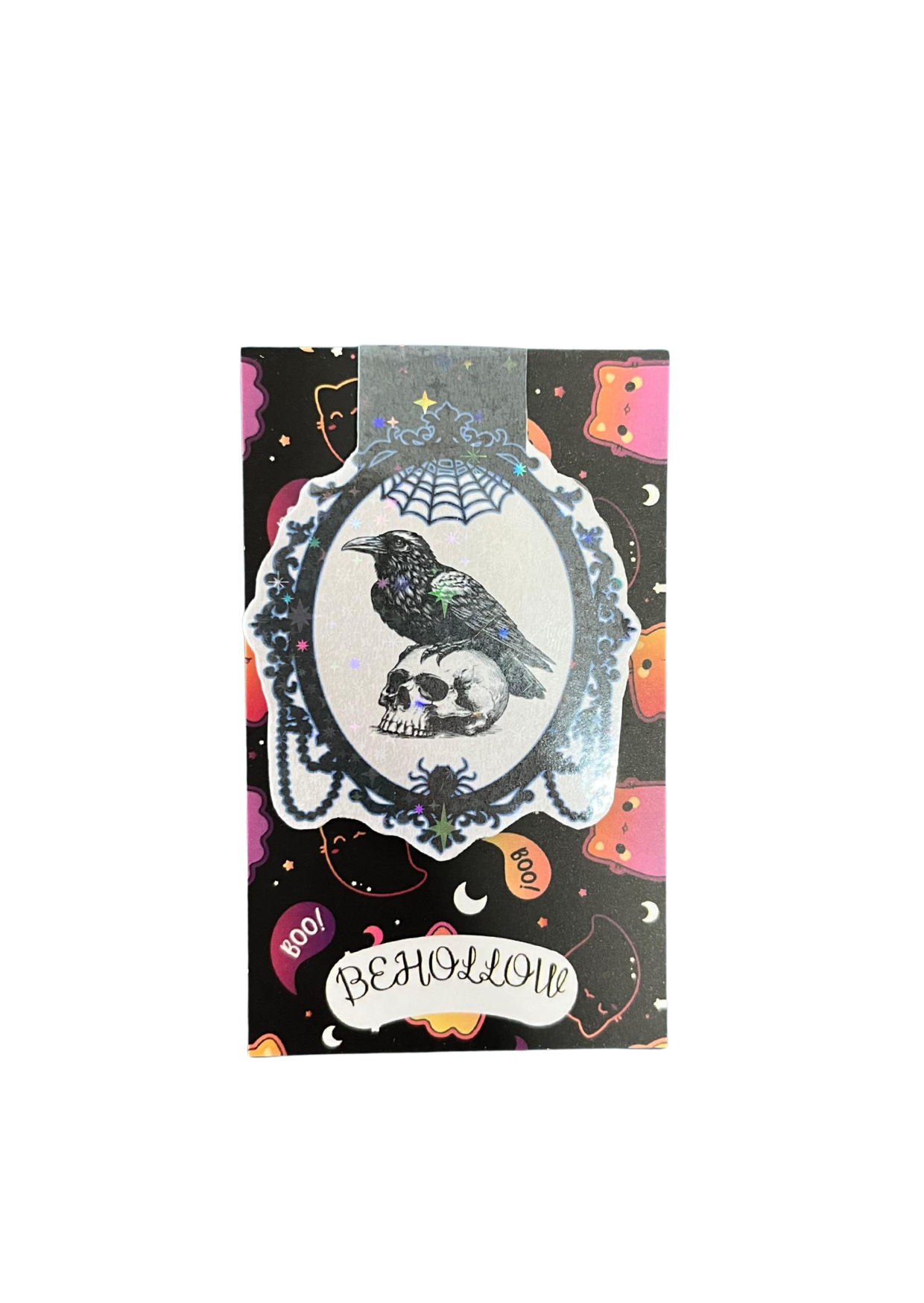 Este marcapáginas magnético combina brillo y misterio: una pieza holográfica que cambia con la luz, reflejando cada emoción que el libro despierta en ti.